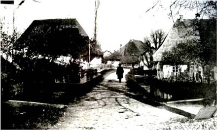 ![]() Gefährlicher Heimweg Galeggenweg südlich der Kirche Suhr um 1900 Blick nach Osten, links Stadtbach, rechts Steinfeldbach („Steufelebach“, Steinfeldmattbach) |