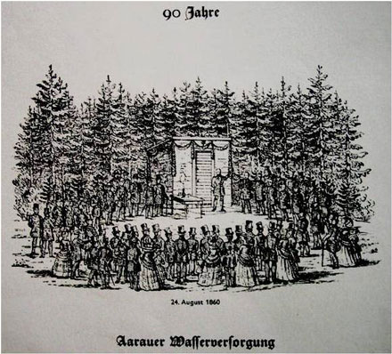 ![]() Die Einweihung des Gönhard-Trinkwasserstollens am 24. August 1860 |