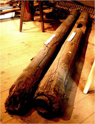 ![]() Wasserdeichel (Dünkel) mit Röhrenbüchsen zur wasser- dichten Verbindung Ortsmuseum Unterentfelden (Staufferhaus) |