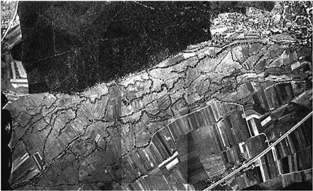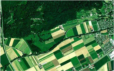 ![]() Quellgebiet des Stadtbachs vor und nach der Melioration von 1942-45 (Fotos vom Kanton Aargau zur Verfügung gestellt) Oben: Luftbild aus den 30er Jahren des 20. Jh. Unten: Luftbild von 1998, mit neuem Anschluss des Stadtbachs an die Suhre (Bildmitte) und dem Quellschutzgebiet (satt grün) ![]() |