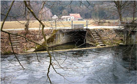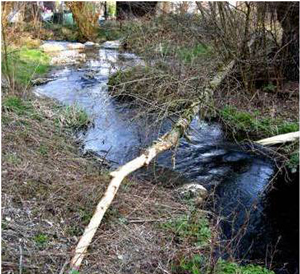 ![]() Abzweigung des Stadtbachs ab der Suhre Nach der Melioration von 1942-45 (Foto März 2009) |
