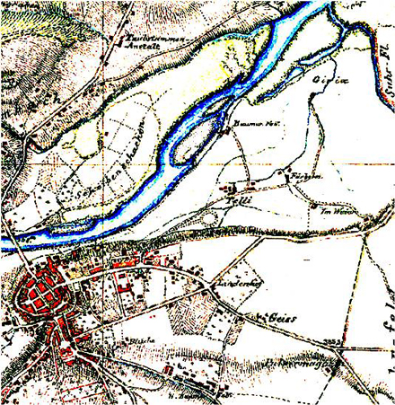 ![]() Auslauf des Stadtbachs (Sengelbach) unterhalb der ummauerten Stadt Michaeliskarte, 1:25‘000, 1837-1843 Im Gebiet „Im Weier“ in der Telli sind zwei Quellen sichtbar, welche schon vor dem Bau des Stadtbachs natürlich existiert haben sollen. Dieser Umstand dient als Argument, dass der Sengelbach vom Obergericht dem Kanton zugehörig gesprochen wird. |