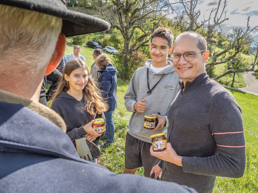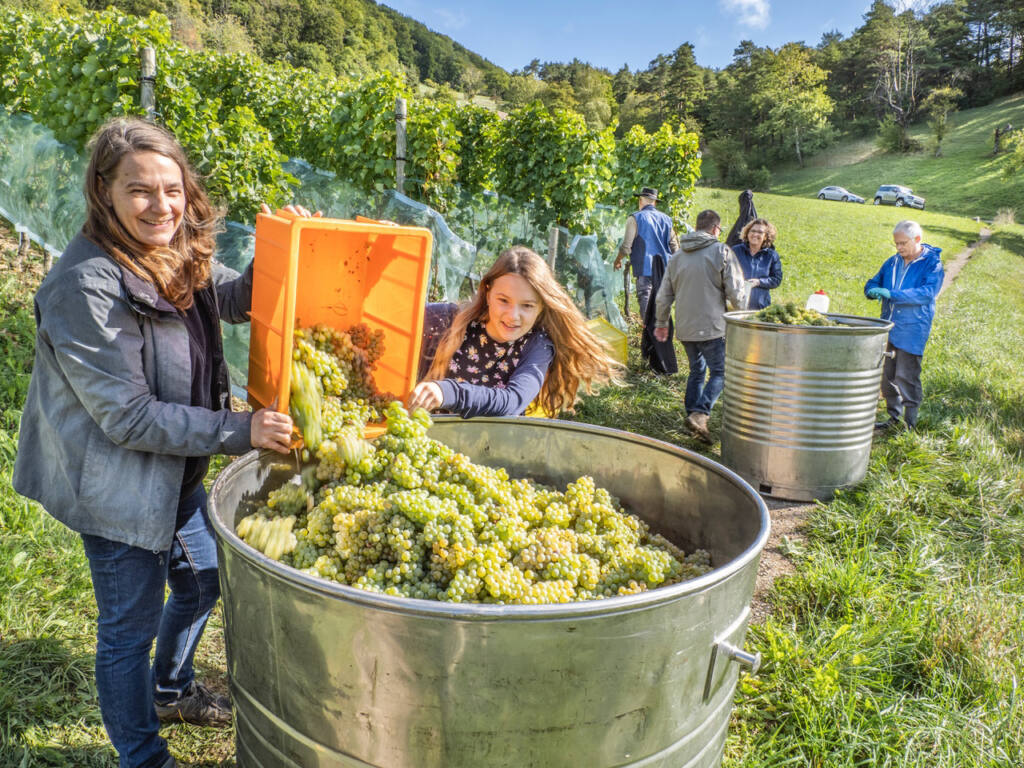 Viele fleissige Hände ernteten 1’146kg Traubengut mit durchschnittlichen 85 Oechsle-Graden. Wiederum ein sehr guter Jahrgang, der des Zünfters Gaumen erfreuen wird.